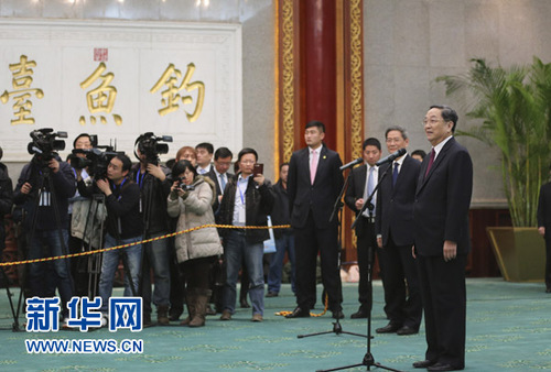 2013年12月22日,中共中央政治局常委、全国政协主席俞正声在北京会见出席2013海峡两岸媒体前瞻论坛的代表。 新华社记者丁林摄