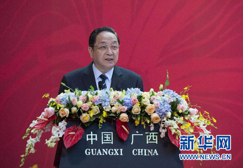 10月27日,为期两天的第九届两岸经贸文化论坛在南宁落下帷幕。中共中央政治局常委、全国政协主席俞正声出席闭幕式并致辞。 新华社记者 王晔 摄
