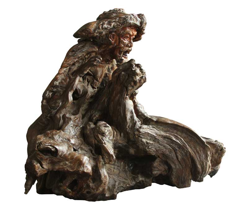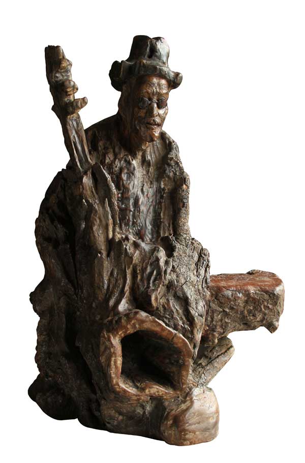 根艺自古有之,相传古时称技艺高深的根雕艺人为“柴株人”。“柴”即指“柴火”,“株”谐音“珠”,意为“柴”为“珠”、“变废为宝”。意指艺人们用自己的智慧使的乡野灶间的柴火,成为了意趣盎然的艺术品。随着根雕行业的繁荣,根雕艺术的流派、风格以及种类都在不断增加。每位艺术家有自己的创作特色,作品的风格也各有不同。出生于浙江兰溪的“柴珠人”郑世有独专注与人物创作,在这里笔者要介绍一下郑世有的作品,以供读者赏析。