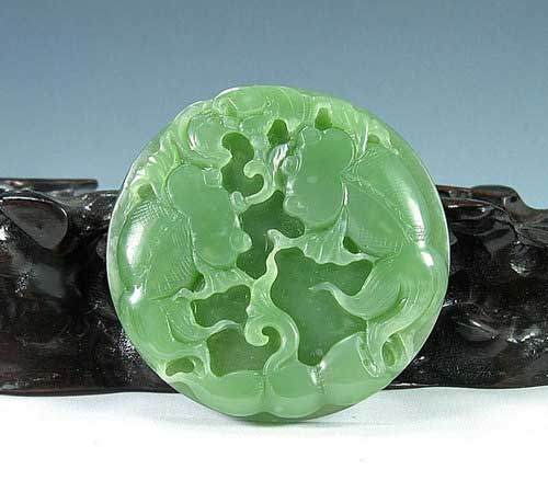 初玩玉的人由于不懂玉,最怕遇到赝品。目前市场上玻璃仿玉制品的辨识,恐怕是赝品中最普遍、最简单的一种。常见的是被称为“翡翠”的光溜溜的小圆环、小鸡心、玉牌片等。这种玻璃制品因为是浇模而成,合范时高温的玻璃液在器物的边沿多少会溢出一点,冷却后成为隐隐凸起的范线。用手摸、眼看都会有所发现。如果拿放大镜映光观察,其中定有大大小小的气泡。