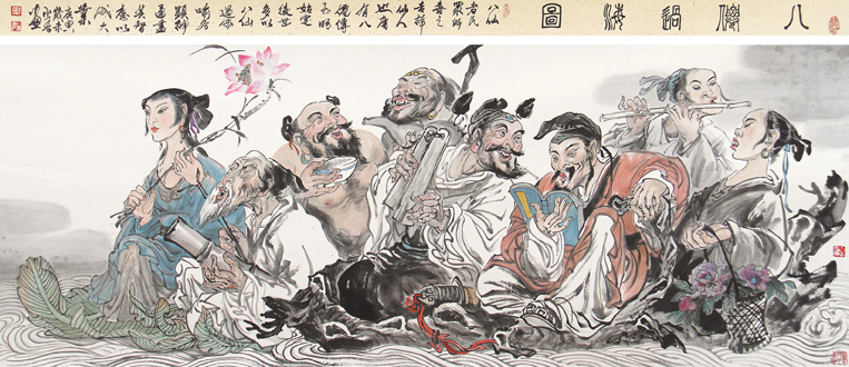 画家显然不满足于题材内容的庄重严肃以及立意构思谋篇布局的深远,将自己的创作目光投向更为广阔的社会和更为绵远的历史,用独特的艺术思维去过滤千古历史和历史镜头下的风流人物。这样,画家笔下的路子更宽了,艺术表现力更丰富了。他通过长期倾力研习中国画论和美学原理,特别重视锤炼中国人物画笔墨功夫的“高古”和追求真善美统一的“意境”。他认为作品中高华之气韵、郁勃之意象的形成既离不开人文品格和艺术气质的涵养,也离不开娴熟的笔墨功夫和博洽的文学修养。所谓佳作必是“文”与“质”相生,“文”与“质”相随。正所谓“文质斑斑,万物粲然”。