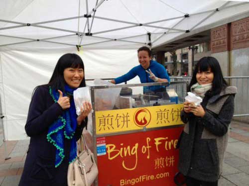 安娜的顾客以中国人、印度人等亚裔居多,作为中国北方传统小吃的煎饼果子,能不能获得美国人的青睐呢?安娜对此颇有信心。“尽管让美国人来尝尝煎饼果子比较难,因为西方国家没有和煎饼果子可以做比较的食物,但我一般把煎饼果子叫做可丽饼,就像法国可丽饼,不过煎饼果子比法国可丽饼更脆,可以加的东西也更多。在我的建议下,很多美国人也愿意尝试煎饼果子,我的客人也越来越多,也有很多回头客,这让我很开心。”
