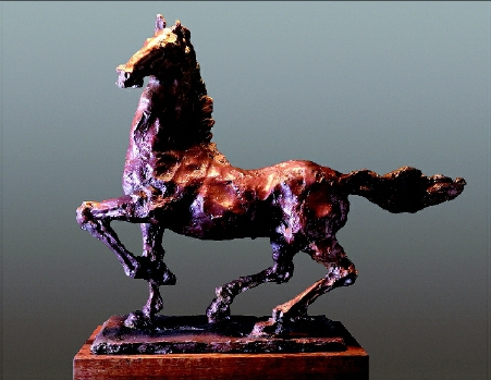 我心仪韩干的马,苏轼在其《韩干画马赞》短短的150字中将气度非凡、神姿妙态的四匹各具个性的马写得散淡闲逸中见骨劲雄风。韩干懂马,让它们在自然中获得自在,适得其所,尽显神韵。苏轼懂韩干,知其匠心,故以文述之,深得要旨。我欣赏悲鸿大师的马,似奔腾的精魂,折射着他的人格精神。观其作,蹄疾声声,浩气凌云。我的老师蒋荪生教授是悲鸿先生弟子,弥留之际将其收藏50多年的徐悲鸿所画之马托于我,画上有悲鸿先生的长题:“南来宜天马\由来万匹强\浮云连阵没\秋草遍山长\闻说真龙种\仍残老骕骦\哀鸣思战斗\迥立向苍苍。——《三十二年暑悲鸿磐溪遣兴》”这匹从70年前走来的神骏,带着悲鸿先生复兴中国美术的高远抱负,经过不同的历史时期,不仅从时间意义上、更从文化意义上叙述了一个历程。它从当年悲鸿先生工作过的中央大学(现南京大学)随我来到北京,现供于中国雕塑院办公室,马年更显魅力。它神出古异,宠辱不惊,一步一步走向未来。