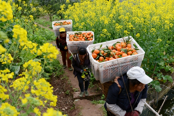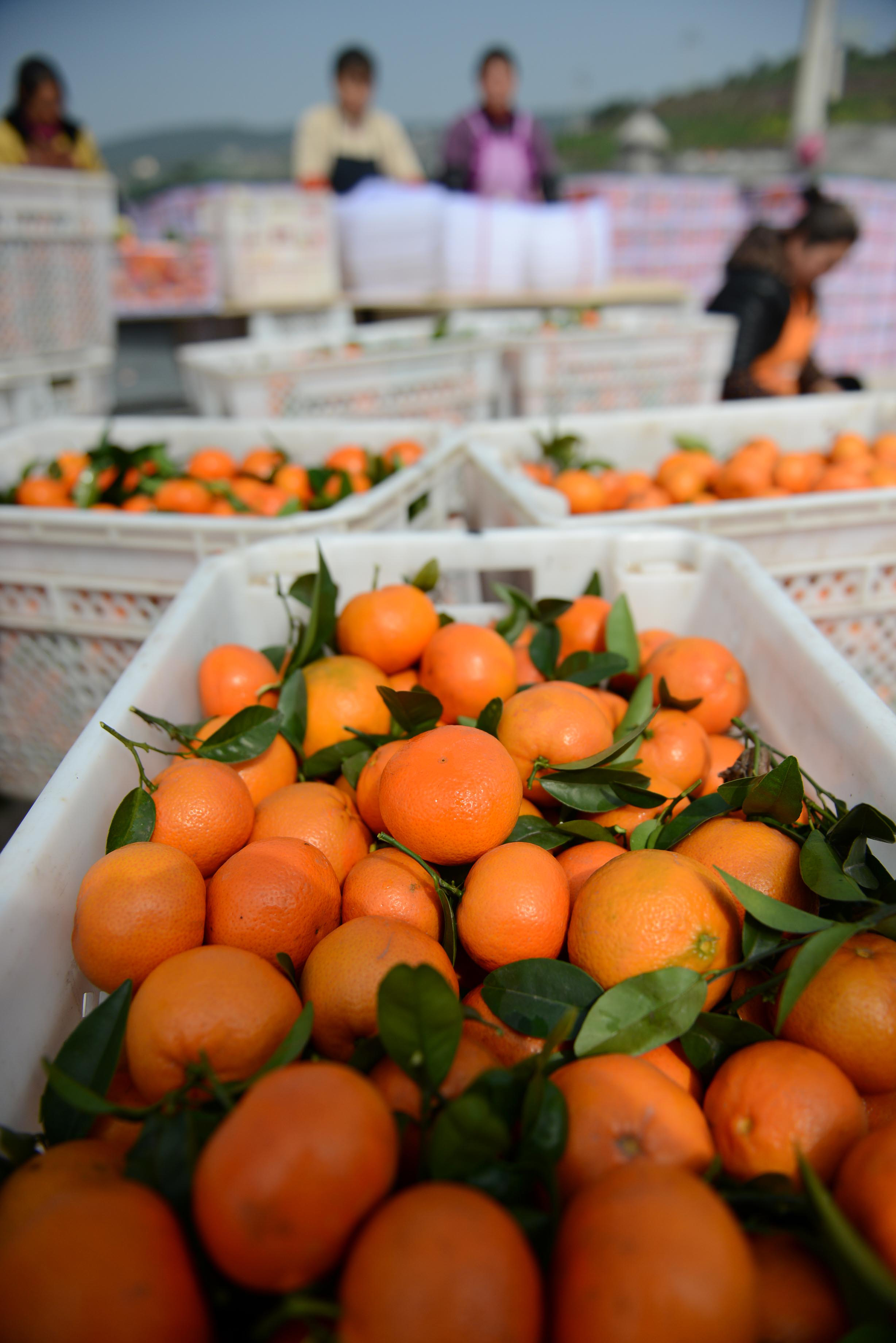 3月4日,在重庆市云阳县黄石镇中韵果园,果农在分装晚熟柑橘。 三峡库区是适宜种植柑橘的地区之一,近年来,地处库区腹地的重庆市云阳县大力发展晚熟柑橘,目前当地投产柑橘面积约8万亩。晚熟的柑橘错峰上市,畅销北京、上海等大城市以及东南亚国家。 新华社发(刘洋 摄)