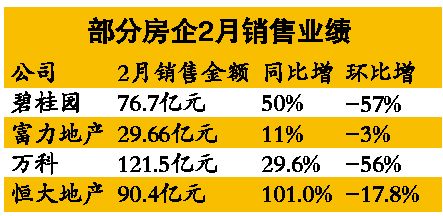 而由于春节因素和信贷紧缩的影响,2月份房企销售业绩普遍下滑。分析称,今年“国N条”难再现,二季度后楼市可能出现回暖。