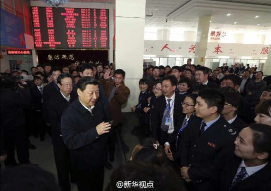 习近平下午来到兰考县为民服务中心??吹角缴?ldquo;还没上班,谁叫你来这么早”等“服务忌语”,他说,服务中心现在很普遍,关键要有实效,最根本是要有一颗为人民服务的心,就像焦裕禄一样。对人民群众没有感情就会说“忌语”,把老百姓看成父母、亲人,就不会说“忌语”。