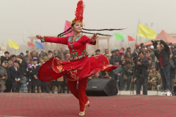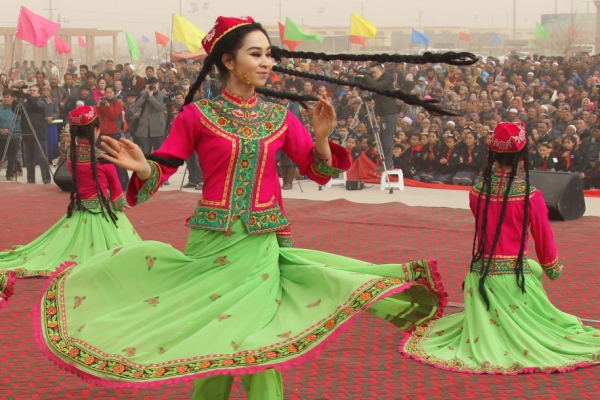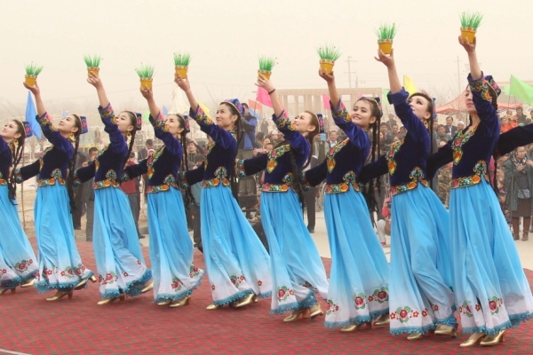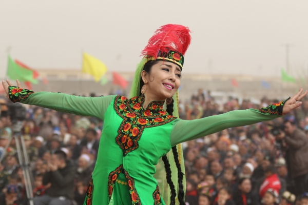 当日,新疆哈密市五堡镇举办喜迎诺茹孜节庆?;疃髯迦褐诰奂滞吩馗柙匚栌优等阕谓?,喜庆春耕春播的开始。“诺茹孜”意为“春雨日”,表示春天到来、春耕春播开始,维吾尔族、哈萨克族、乌孜别克族等民族年年都要以歌舞、杂技等形式庆祝诺茹孜节。