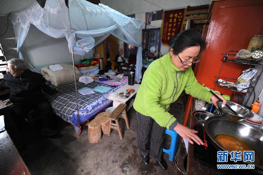 61岁的孙丽娜今年一只眼睛失明后已不再教书,现在她主要负责两人的生活起居,好让朱敏才更安心工作(3月20日摄)。