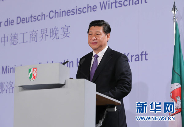 3月29日,国家主席习近平在杜塞尔多夫出席中德工商界举行的招待会并发表题为《把握中国机遇,实现共同发展》的重要讲话。新华社记者刘卫兵摄