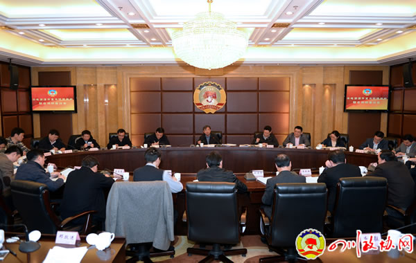 四川省政协和致公党中央联合调研水电开发和环境?;?,图为调研之前和四川省直部门的座谈会。