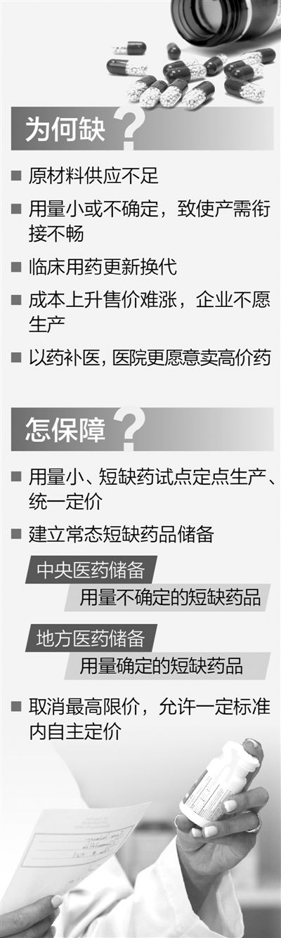 国家卫生计生委药物政策与基本药物制度司司长郑宏认为,导致药品短缺的原因是多方面的,既有原材料产量减少、原料药供应不足的问题,也有部分药品用量小、临床需求不确定致使产需难以有效衔接的问题,也有临床用药更新换代的问题。