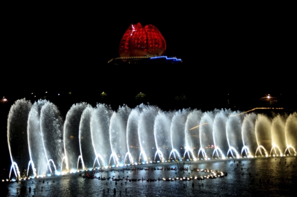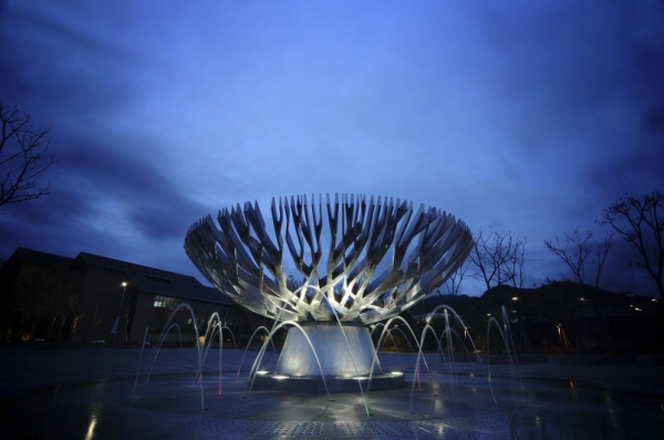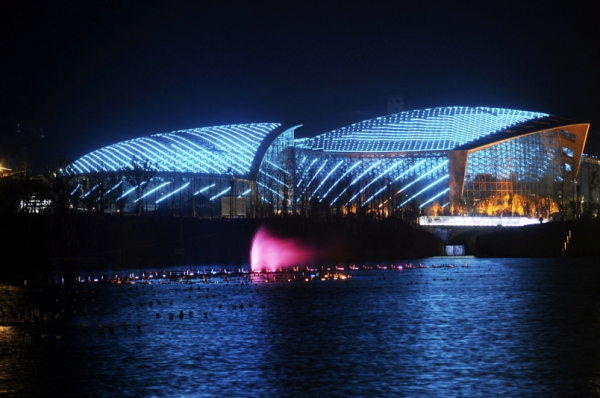 日前,2014青岛世界园艺博览会园区进行灯光调试,为4月25日世园会正式开园做最后准备。