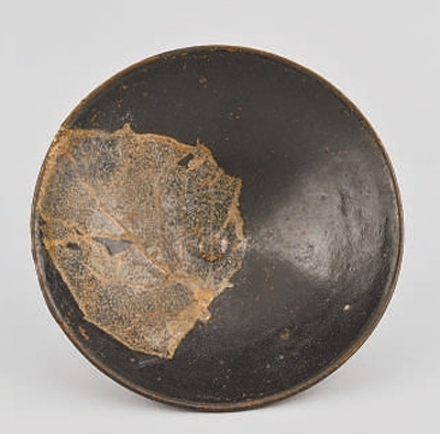 江西瓷业在漫长的发展中丰富了瓷器品类,完善了制瓷技术,涌现出多种创新性产品。展出的“灰陶鬶”以夸张的飞禽走兽形象彰显出原始陶器丰富的想象力;洪州窑的“青瓷印花缽”施青釉,略闪青黄色,精美典雅。最为典型的是一件精致的吉州窑“黑釉木叶纹碗”,不仅展示出吉州窑的典型瓷器装饰风,亦是江西瓷器烧造史上的点睛之作。作为宋朝最具特色的民窑,吉州窑独创的清新活泼的木叶贴花、剪纸贴花等黑釉瓷,都是极为名贵的品种,充满了强烈的生活气息和浓郁的民间风味,雅俗兼备。“黑釉木叶纹碗”是一种木叶贴花,即将天然树叶浸水腐蚀后留存叶脉,贴在已施黑釉的瓷器上,再敷透明黄釉经高温烧制而成,树叶的形状、叶脉清晰可见。如果注上茶水,就会看到树叶仿佛在水中漂浮,别有一番情趣。