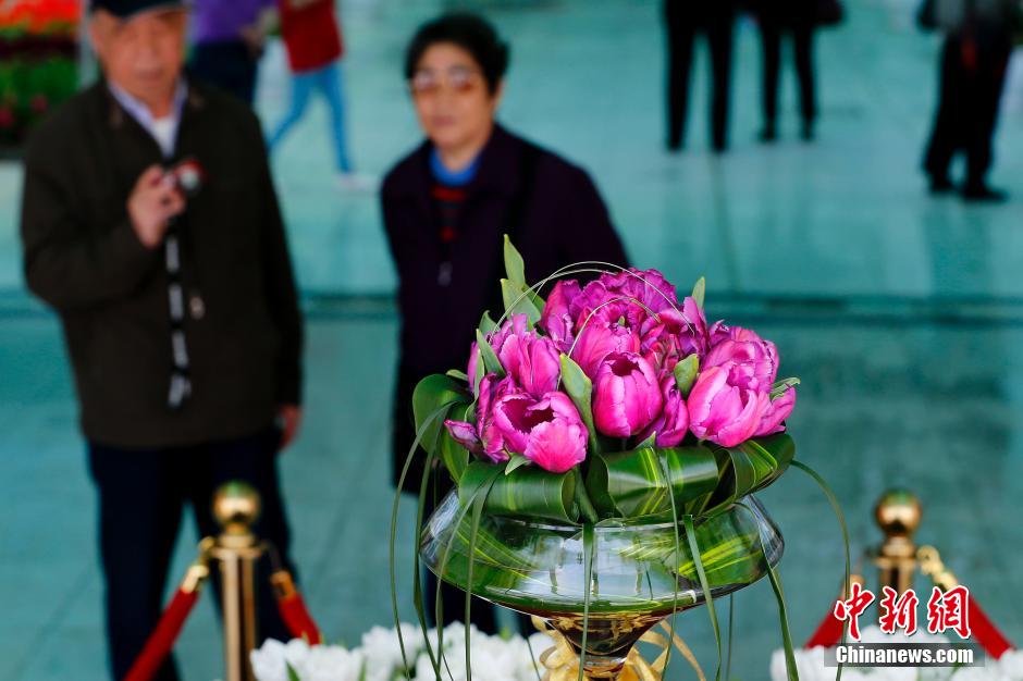 4月21日,彭丽媛访问荷兰时命名的郁金香新品种“国泰”落户北京国际鲜花港,这是该品种在国内的首次亮相。“国泰”的出席也为正在举办的第五届北京郁金香文化节增色不少。中新社发 富田 摄