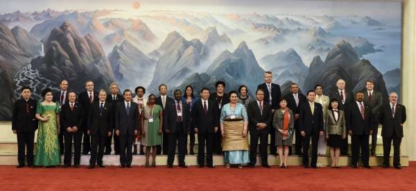 习近平代表中国政府和人民对大会召开表示热烈祝贺,并向珍视友谊、热爱和平的国际友人,向长期同情和支持中国革命、建设、改革事业的各国朋友们致以崇高敬意。