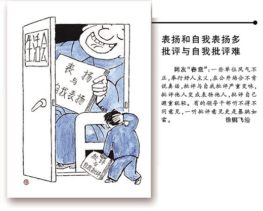 本报北京5月19日电 (记者江琳)5月9日,中央纪委监察部网站“每月e题”继续推出请网友监督的专题:晒一晒身边党员干部“组织涣散 纪律松弛”的现象,并就如何克服这种现象建言献策。专题推出后,社会反响热烈,广大网友踊跃参与。19日凌晨,中央纪委监察部网站摘发部分网友留言,晒出八类党员干部“组织涣散 纪律松弛”现象,同时配以漫画。