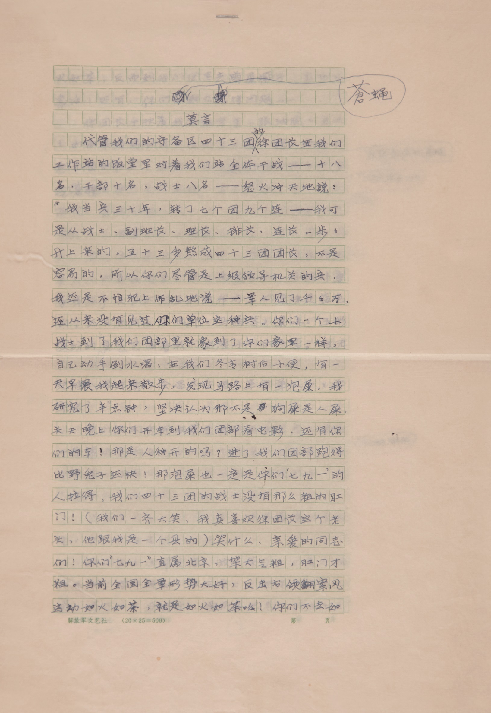 这份手稿由莫言亲自工整撰写在“解放军文艺社”稿纸上,于上世纪80年代中期发表在《解放军文艺》杂志上。