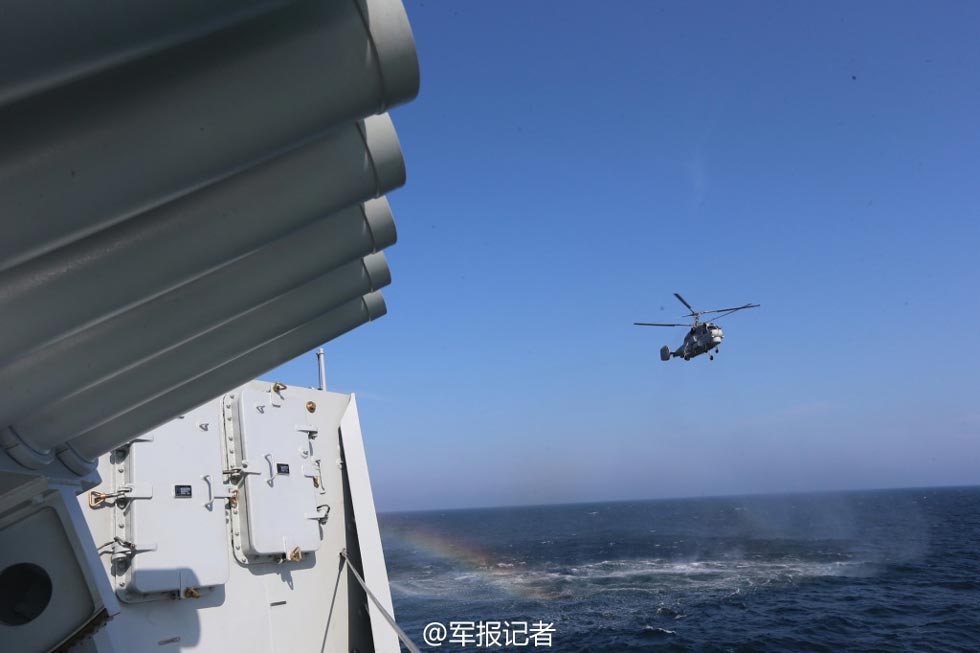 5月24日下午1时许,东海某海域突然间炮声四起,中俄联合编队6艘舰艇进行了对"舰"射击、火箭深弹攻"潜"、对空实射等演练,下午2时50分,随着海上实际使用武器演练结束,历时3天的中俄"海上联合一2014"军事演习海上课目全部完成。