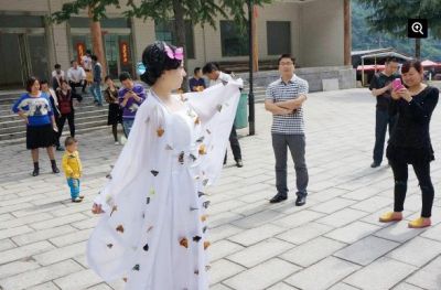 24日,有媒体报道称,河南宝天曼景区在首届“蝴蝶节”中推出的“蝴蝶仙子”,是将上百只活蝴蝶用钢针直接扎死在洁白的石榴裙上的。
