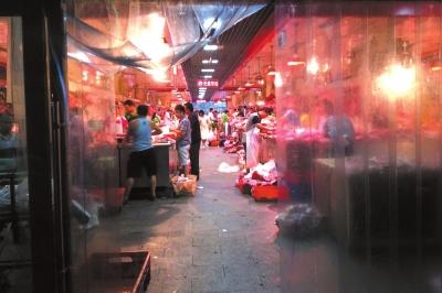 新发地鲜肉批发市场内,摊主们正忙着切肉(资料图片)。京华时报记者徐晓帆摄