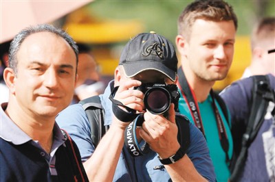 专心拍摄的法国摄影师菲利普。本报记者 宦 佳摄