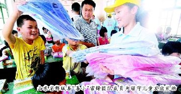 山东省鄄城县“善小”雷锋团队成员为留守儿童发放礼物