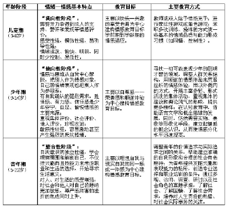 ▲图表1:根据学生的脑发育、心理特征、主导的生活方式而得出不同年龄段(儿童、少年、青年)的情感发展的具体目标及教育策略。