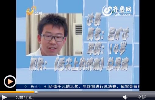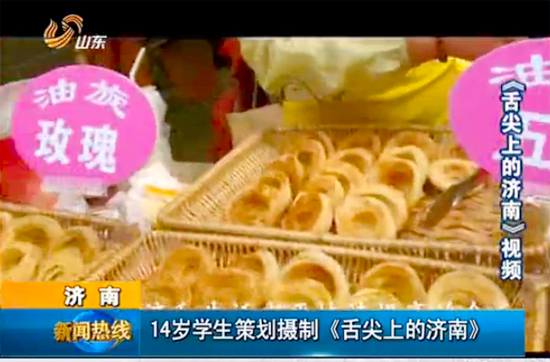 据山东广播电视台公共频道《民生直通车》报道,这两年《舌尖上的中国》是相当的火,因为那是央视投拍的一部纪录片。最近,也有一个词叫“舌尖上的济南”,在很多朋友手机里的微信圈也在转载着,要说这样的一个短片非常的不容易,咱先不说人家最后传播的效果怎么样,这策划者和拍摄者居然是一个14岁的少年。