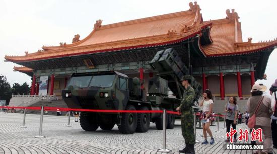 6月7日,“中央军事院校校友总会”、“中华黄埔四海同心会”等台湾退伍军人团体在台北中正文化中心两厅院广场举行“庆?;破医ň?0周年暨对日抗战77周年纪念活动”。图为台湾军方在活动现场展示爱国者导弹等现役武器装备。中新社发 刘舒凌 摄