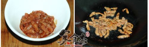 6. 撒少许白糖提味,再加入炒好的肉丝炒匀即可起锅