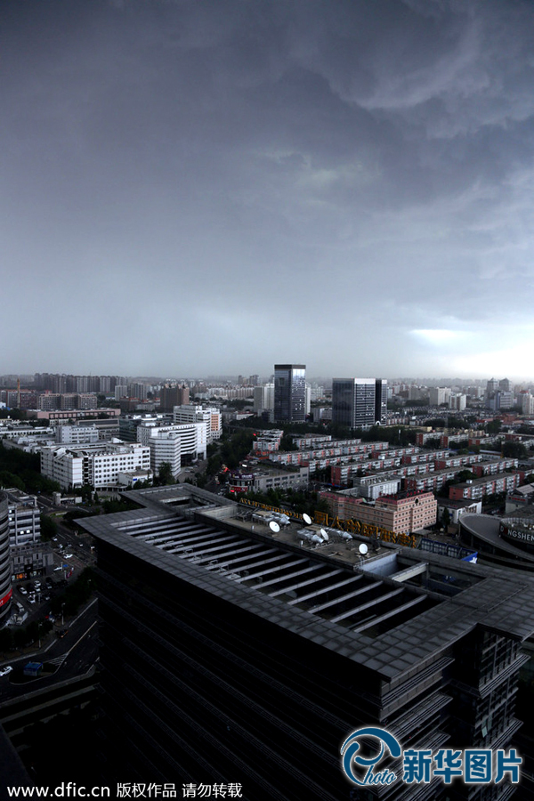 2014年6月8日,北京,北京午后突降暴雨,乌云笼罩北京北部地区,图为午后两点半左右,北京五道口地区远眺整个北部地区。