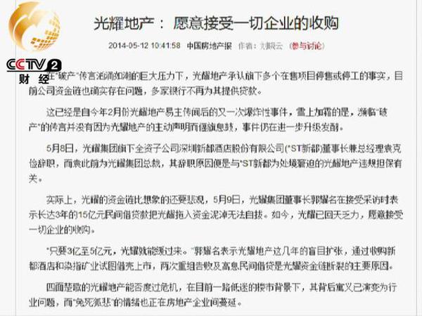 郭耀名承认目前公司资金比较紧张。事实上,在媒体爆出光耀面临资金链危机之后,光耀集团曾经在第一时间公开宣布愿意接受一切企业的收购。由此公众纷纷猜测,光耀正面临严重资金链危机。而对这一点,郭耀名表示,正是当初一系列上市行为的失败,导致了光耀今天的艰难境况。