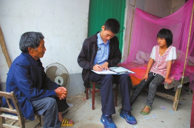6月1日,刘向明配合当地的邢楼镇派出所民警登记户籍信息,以备给孩子上户口。京华时报记者李显峰摄