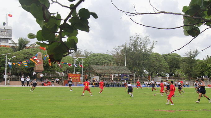菲越军人在我国南子岛上踢足球搞联欢(组图)