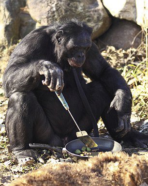 关键词:世界最聪明黑猩猩 最聪明黑猩猩 黑猩猩 会烹饪能认字 全能黑猩猩