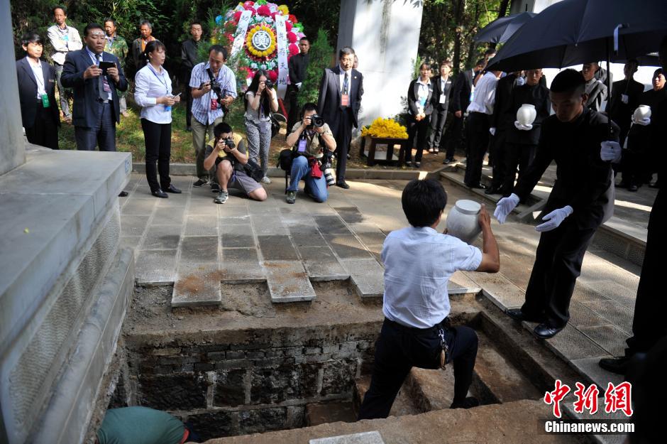 6月12日,2014“中国远征军抗日阵亡将士”公祭活动在云南腾冲举行,从缅甸寻取的中国远征军抗日阵亡将士部分遗骸,归葬在腾冲国殇墓园中国远征军抗日阵亡将士墓。中新社发 刘冉阳 摄