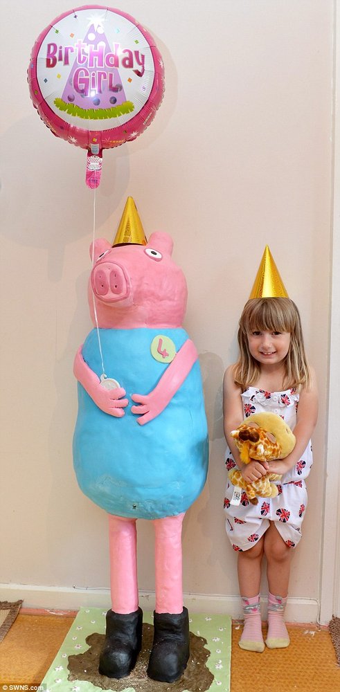 中国日报网6月12日电(王菁) 据英国《每日邮报》报道,英国一位母亲为了给女儿庆祝4岁生日,在短短4天时间里亲手烘焙了一个以粉红猪小妹为原型、比孩子还高的大蛋糕!丈夫帮忙搭了支架后,充满创意的妈妈就开始大显身手,创造了这款足够700人享用的超萌美食。