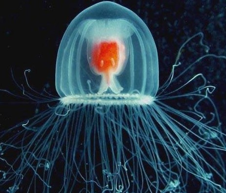 灯塔水母:这种水母物种或许是世界上唯一真正发现不老泉的动物。因为它有能力从一个成熟的成年阶段转变成一个不成熟的息肉阶段然后再变回来,或许它的寿命并不受大自然的限制。因为它们能够忽视死亡,所以个体的数量正在不断激增。