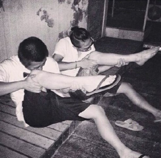 一张娘子军用腿开枪的图片被网友纷纷模仿,很多人觉得这个姿势很酷。