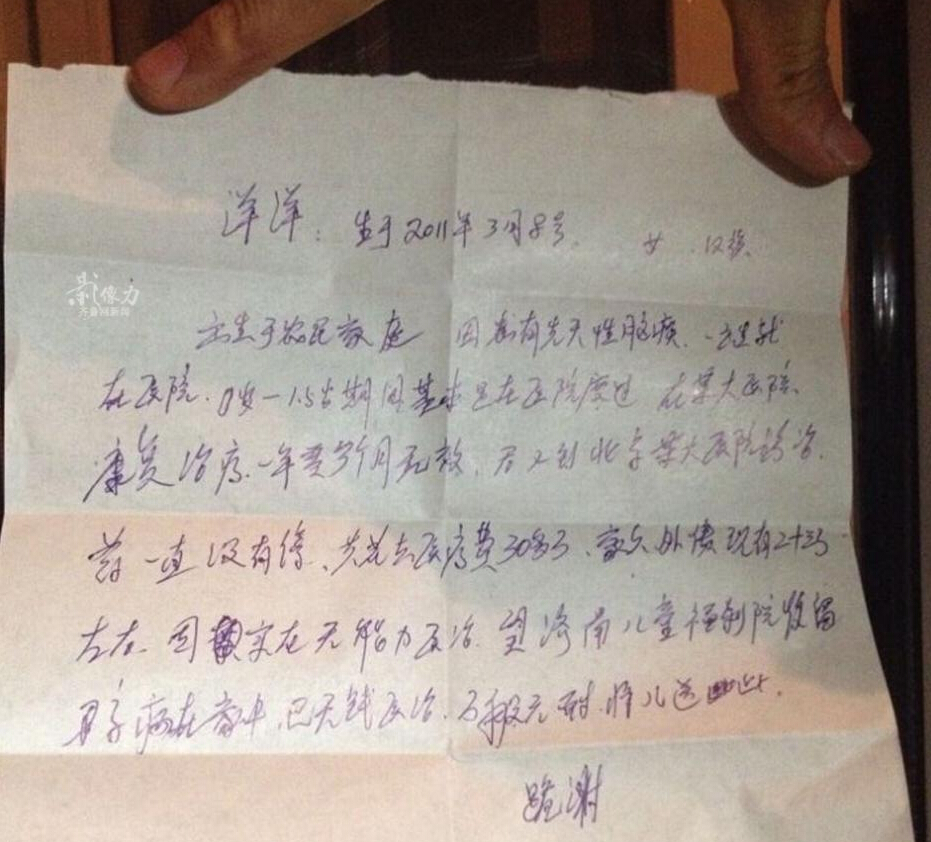 弃婴洋洋的信息。齐鲁网记者 于鹏 满倩图片来源:齐鲁网