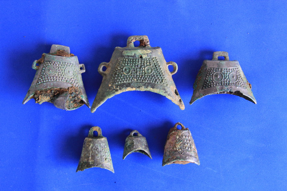 这是大坪子墓葬群出土物铜铃(6月9日摄)。