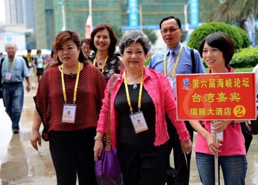 6月15日,来自台湾的嘉宾步入第六届海峡论坛大会会场。