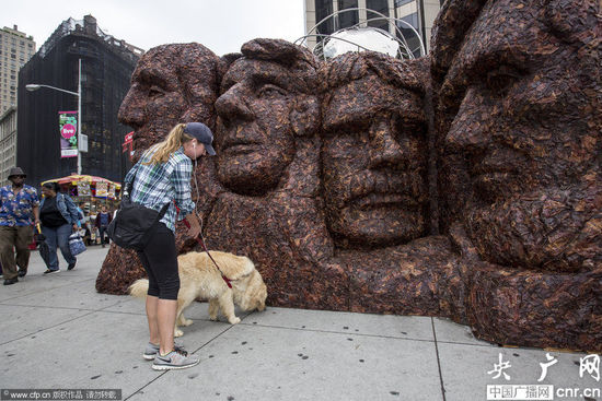 美国纽约用725公斤牛肉干造总统山雕像被狗啃(组图)