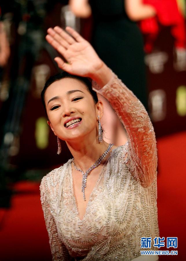 6月14日,本届电影节“金爵奖”评委会主席巩俐走上红地毯。当日,2014上海国际电影节开幕式在上海大剧院举行,开幕式前的红毯上星光闪耀。 新华社记者刘颖摄