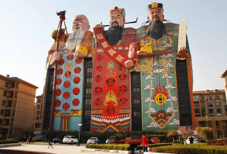2009年12月15日,河北燕郊,曾被网友形容为“史上最雷人”的天子大酒店。酒店外形为传统的“福禄寿”三星彩塑,高达41.6米。据称,该酒店早在2001年就以“最大象形建筑”登上了世界吉尼斯纪录并获得了吉尼斯最佳项目奖,是当时世界同类以雕塑形式出现的建筑物中规模最大的。