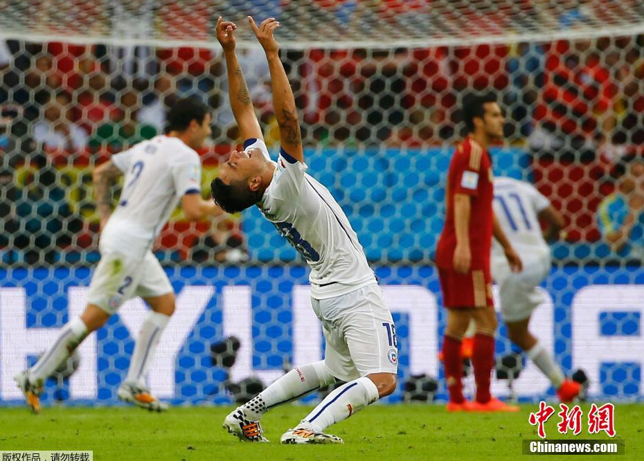 北京时间6月19日凌晨3点(巴西当地时间18日下午16点),2014年世界杯B组一场焦点战在马拉卡纳球场展开争夺,卫冕冠军西班牙0-2智利。2个进球都在上半时打进,阿兰奎斯1传1射,巴尔加斯打入1球。智利积6分,与荷兰携手出线,西班牙小组赛提前一轮惨遭淘汰。