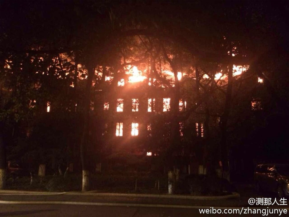 上海大学两校区凌晨起火 延长校区整幢大楼燃烧(图)