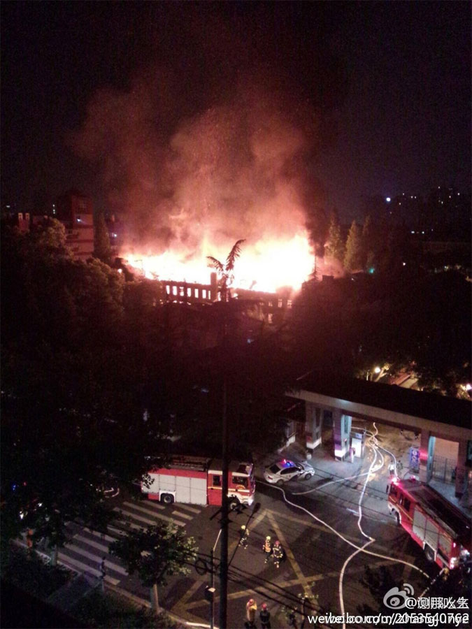 6月19日凌晨,上海大学延长路校区一临街大楼突发大火,经消防官兵奋力扑救,大火于凌晨4时许扑灭,未造成人员伤亡。(网络供图)