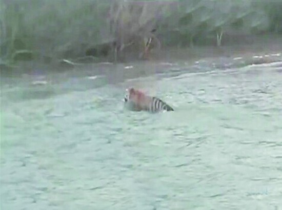 新华网哈尔滨6月16日电(记者张玥)黑龙江省抚远县渔民日前在乌苏里江上,记录下长达10分钟的野生东北虎渡江画面。专家初步判定,这是一只野生东北虎,并且身体状况良好。
