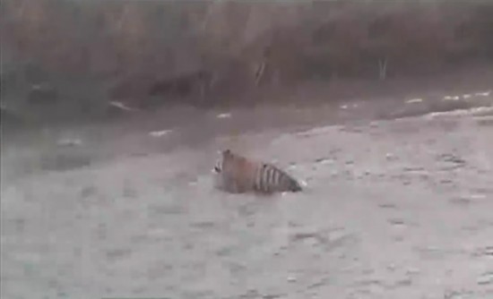 渔夫的“奇幻漂流”:野生东北虎欲上渔船 被渔民用撑杆击退(组图)